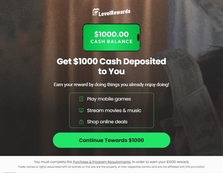 💵 Get a $1,000 Cash Deposit! Complete the offer and receive your reward directly.